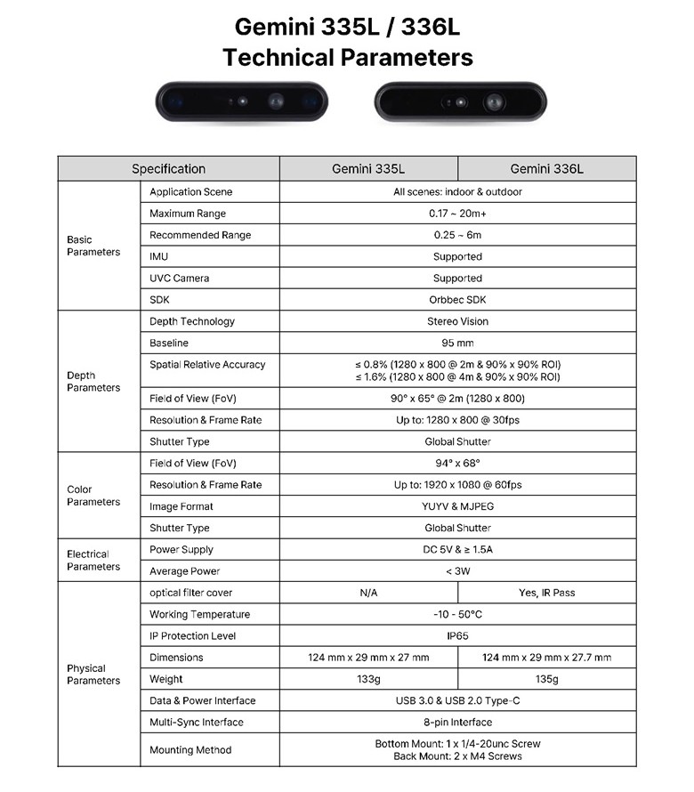 Built on the exceptional depth performance and quality of the Gemini 335L , the Gemini 336L enhances active infrared imaging by filtering out the visible light spectrum, delivering stable and precise imaging even in challenging lighting conditions such as indoor reflective surfaces generating glare.