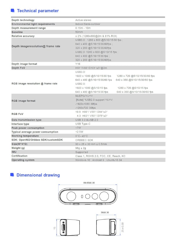 In addition, the camera provide flexible and rich frame synchronization and multi-machine synchronization functions, and support with a cross-platform development toolkit-ORBBEC SDK.